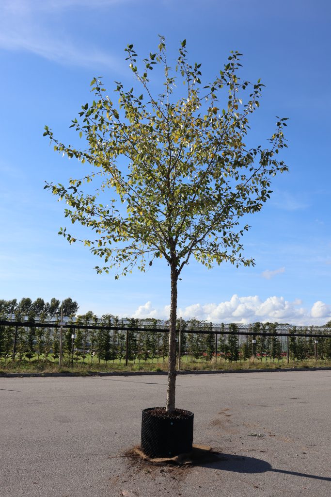 Denna sort har en pyramidal krona med tätt sittande, upprätta grenar som förgrenar sig kvastlikt. Bladverket är friskt grönt och de relativt små bladskivorna har en omvänt äggrund form påminnande om squashracket. Bra att använda om man vill ha en snabbt uppvuxen, bred och tät vindbarriär eller insynsskydd. Också fina solitärträd i parker men med […]