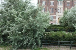 Här har vi ett buskträd som inte klagar om torra och t.o.m. salta vindar sveper fram vecka efter vecka. Även näringsfattiga jordar går bra eftersom silverbuskar har kvävefixerande rötter. De silvriga smala bladen sitter jämnt strödda över de långa svepande årsskotten som vajar i vinden. Den smalbladiga silverbusken är en jättebuske som normalt blir flerstammig men trädlik med grova stammar. Genom flitig beskärning och uppbindning i plantskolan och under etableringen kan man uppnå stamträd men vart träd blir unikt och passar bättre till oregelbundna torgplanteringar än som enhetliga alléer. Det kan också vara svårt att uppnå stabila träd så välj vindskyddade, soliga lägen om det är viktigt med ett rakstammigt och högt träd. Bäst är att sätta stora naturliga grupper där man kan gallra bort ev. lutande exemplar. Ett fantastiskt livfullt buskträd som genom sin silvriga färg är roligt att kombinera med annan växtlighet.