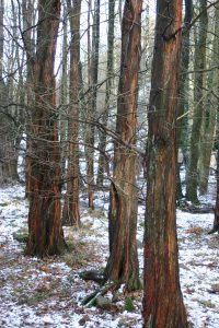 Unikt barrträd upptäckt i Kina först på 1940-talet. Släktet är mycket gammalt och har en gång växt med flera arter på stora delar av norra halvklotet. Detta är den enda överlevande arten. Nu gör trädet ett starkt återtåg över hela jorden, eftersom det visat sig mycket dekorativt och odlingsvärt. Kinesiskt sekvoja växer mycket fort upp till rakstammiga, symmetriska träd. Stambarken är rödbrun och flagar i långa barkstrimlor. Ibland blir stammen åsig och gropig, inte helt olikt bilden på humlebokens stam på motstående sida. Barren fälls vart år och återkommer mycket friskt och ljust äppelgröna om våren. På hösten färgas de vackert rostbruna innan de faller. Ett mycket tacksamt träd som visat sig tuffare än man först trodde. Vindtåligheten är god men en utsatt position kan innebära en mer äggrund och lägre krona. Vattenbehovet är stort, men trädet utvecklar kraftiga vattensökande pålrötter som oftast sörjer för detta om växtbädden tillåter. Kan användas i staden.