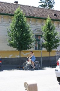Detta kinesiska päron har många starka prydnadsmeriter och god tolerans mot stadens svåra situationer. Kronan är uppbyggd av ett starkt ledarskott som bildar en spikrak huvudstam. Från den utgår tätt med tunnare kvistar och resultatet blir en mycket strikt kon som i trädets ungdomsfas är militäriskt formstark. Även som äldre är träden arikitektoniska med tydlig konform. Kronan översållas av kritvita blommor men bildar endast få och små päron vilket är positivt över trottoarer m.m. Bladen är glansigt läderartade och får en kraftig höstfärg i varma röda och vinröda toner. Ett jättebra stadsträd för solbelysta gator och torg, vars jordsituation den hanterar galant. Härdigheten är detta pärons svaghet men genom att välja stora kvalitéer och platser med extra varmt läge kan goda resultat nås.